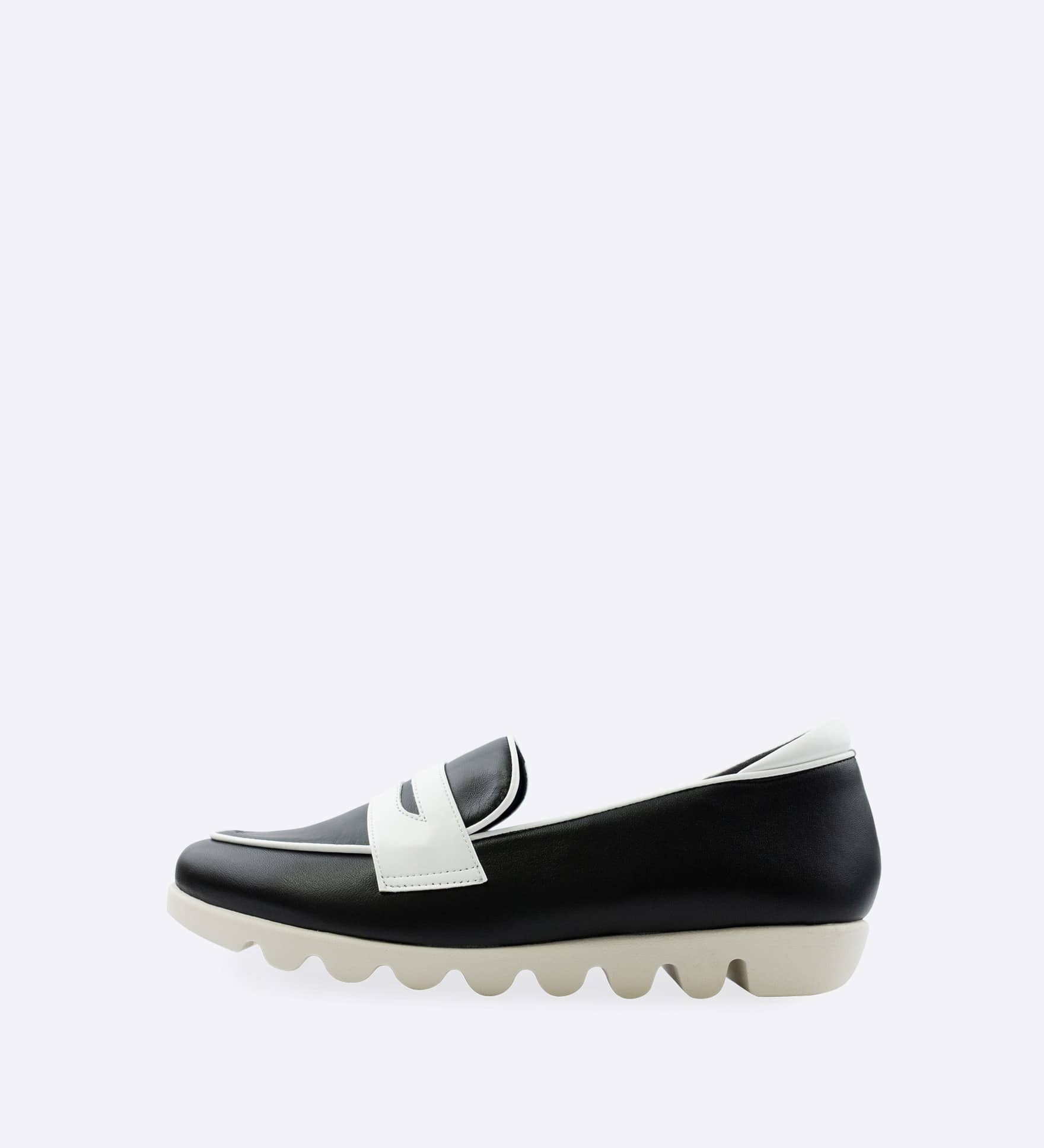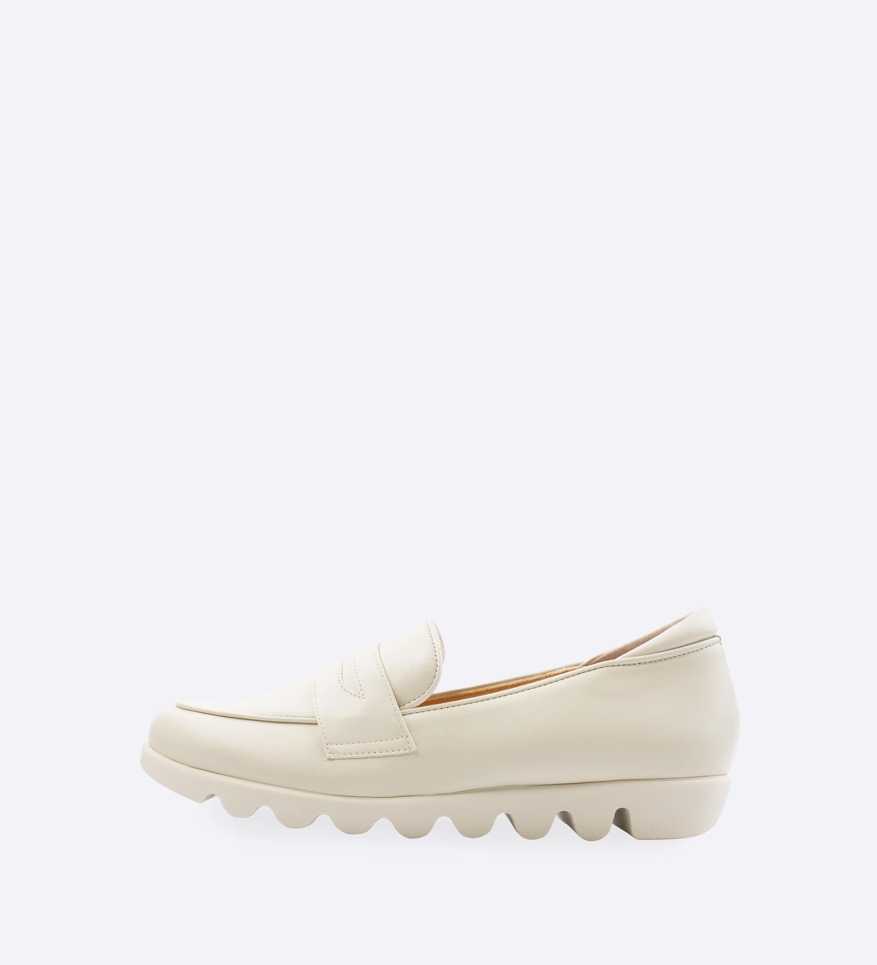 柔らかなレザーを使用したシンプルローファー。ホワイトソールが全体を引き締め、装いを爽やかに演出します。アッパーに施したインナースポンジがやさしく足にフィットし、軽くグリップ力のある3cmの「ウェーブソールリップル」を採用しています。