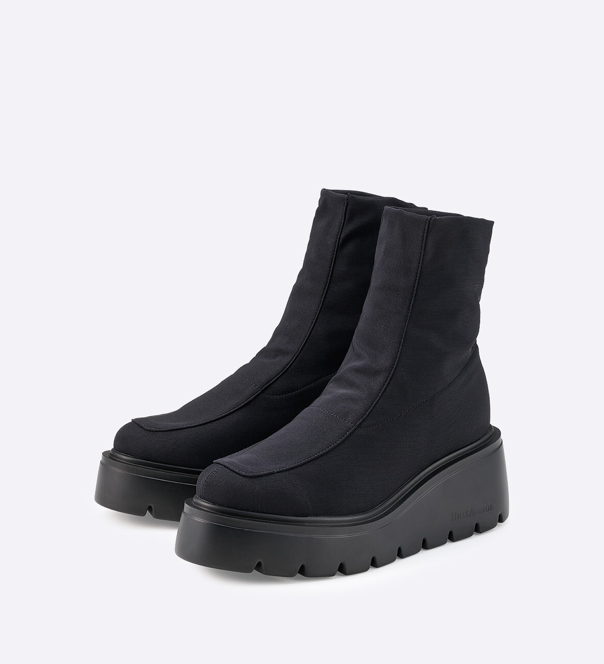 ロングセラーのストレッチブーツに、トレンドの厚底ソールをプラスしたデザイン。フィットする履きごこちでが足もとをすっきりと整えて華奢に見せてくれます。エレガントにもカジュアルにも合わせやすく、春先まで活躍してくれそう。