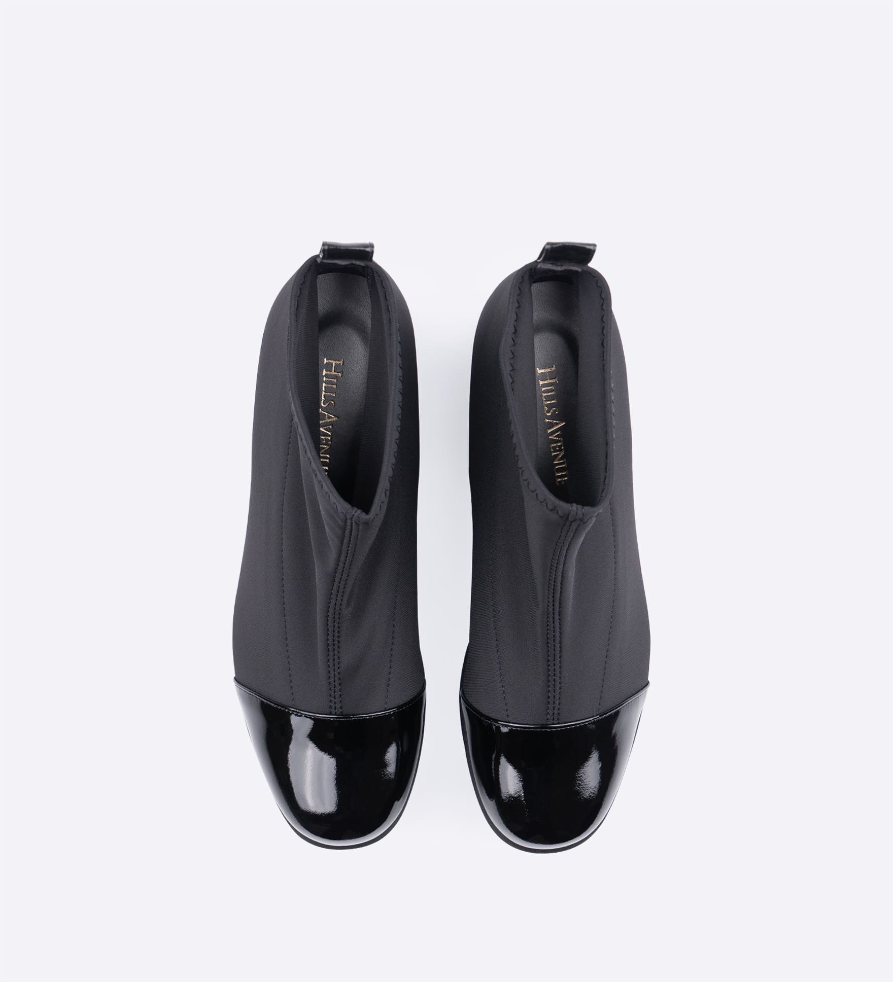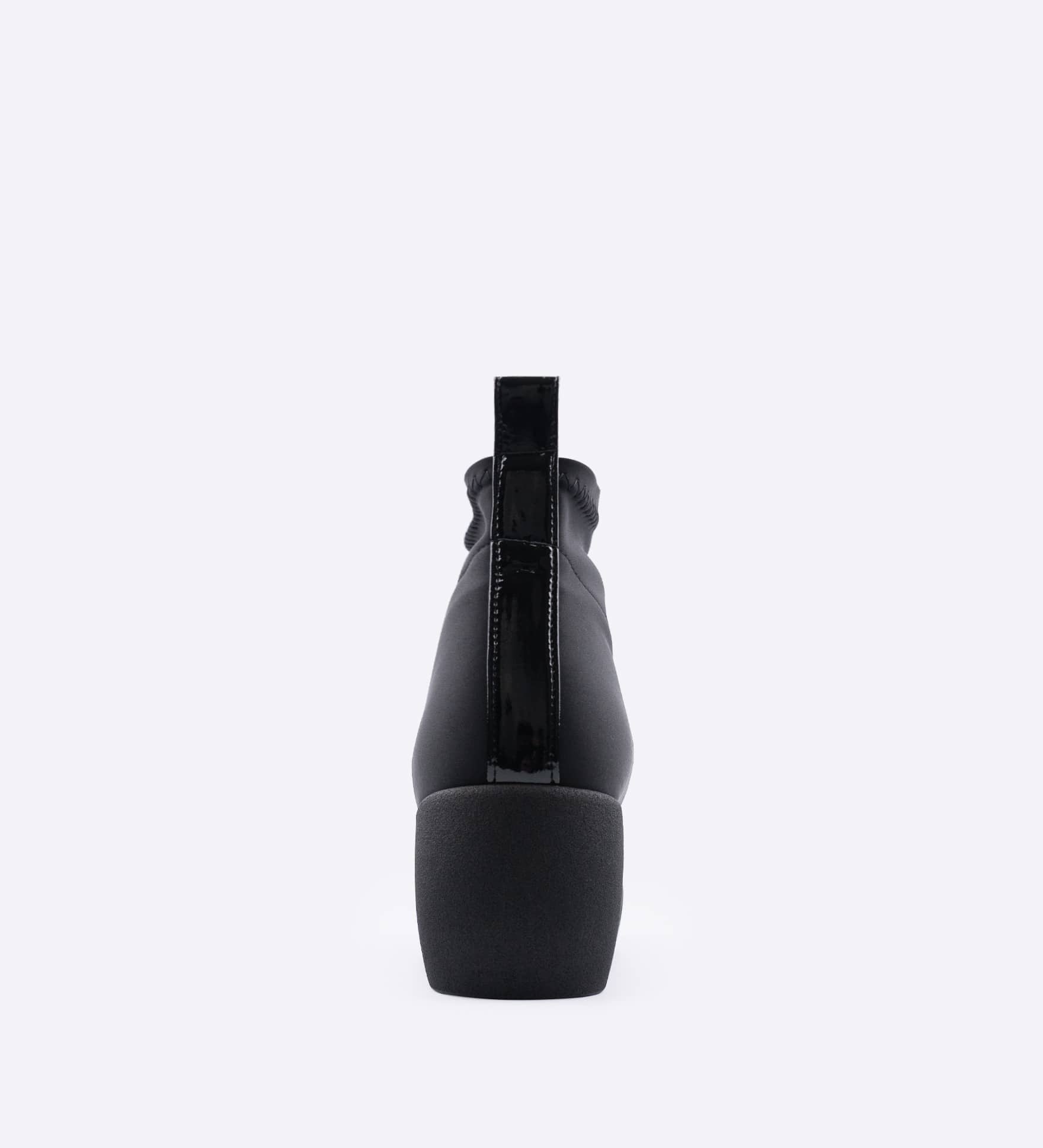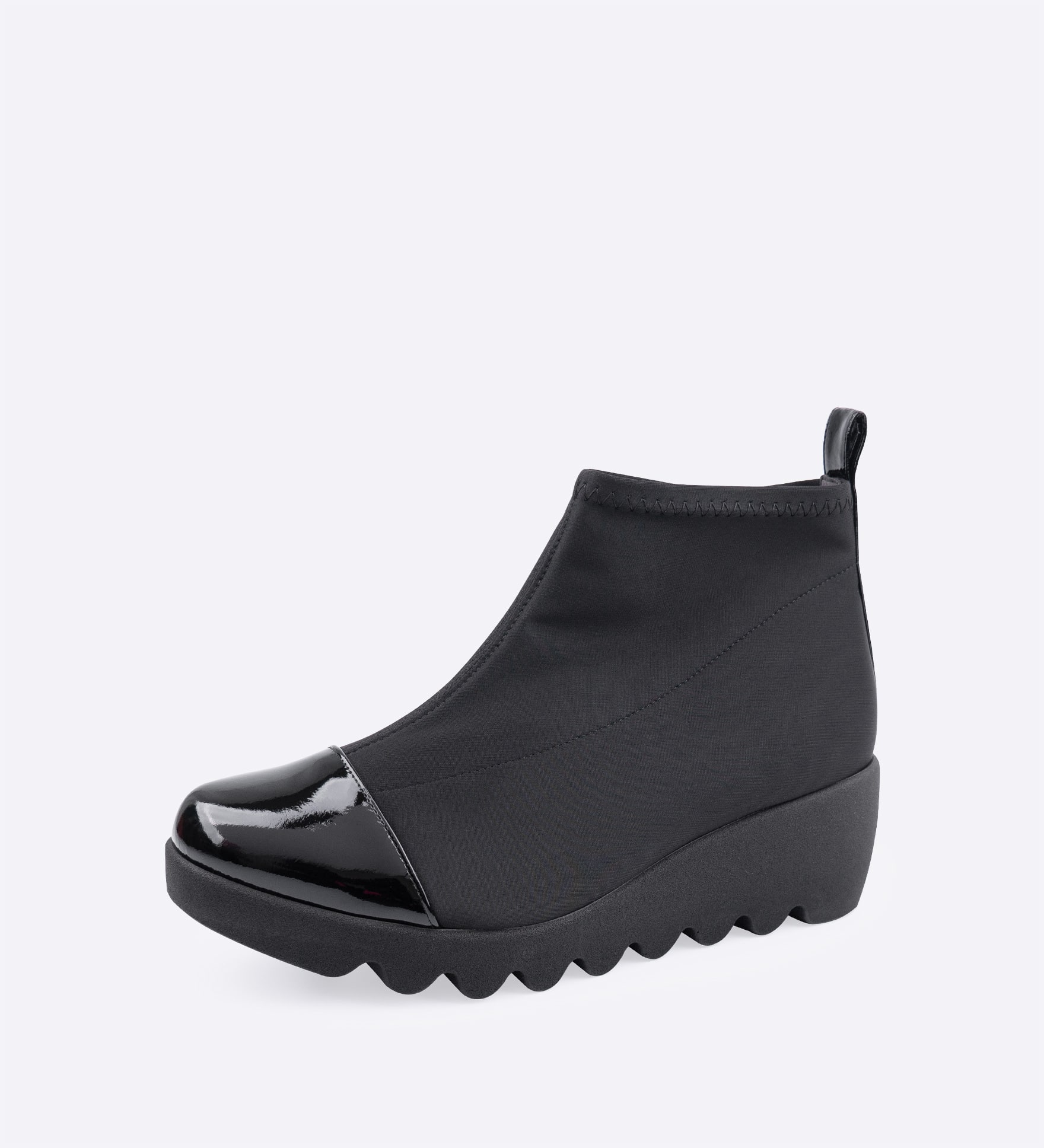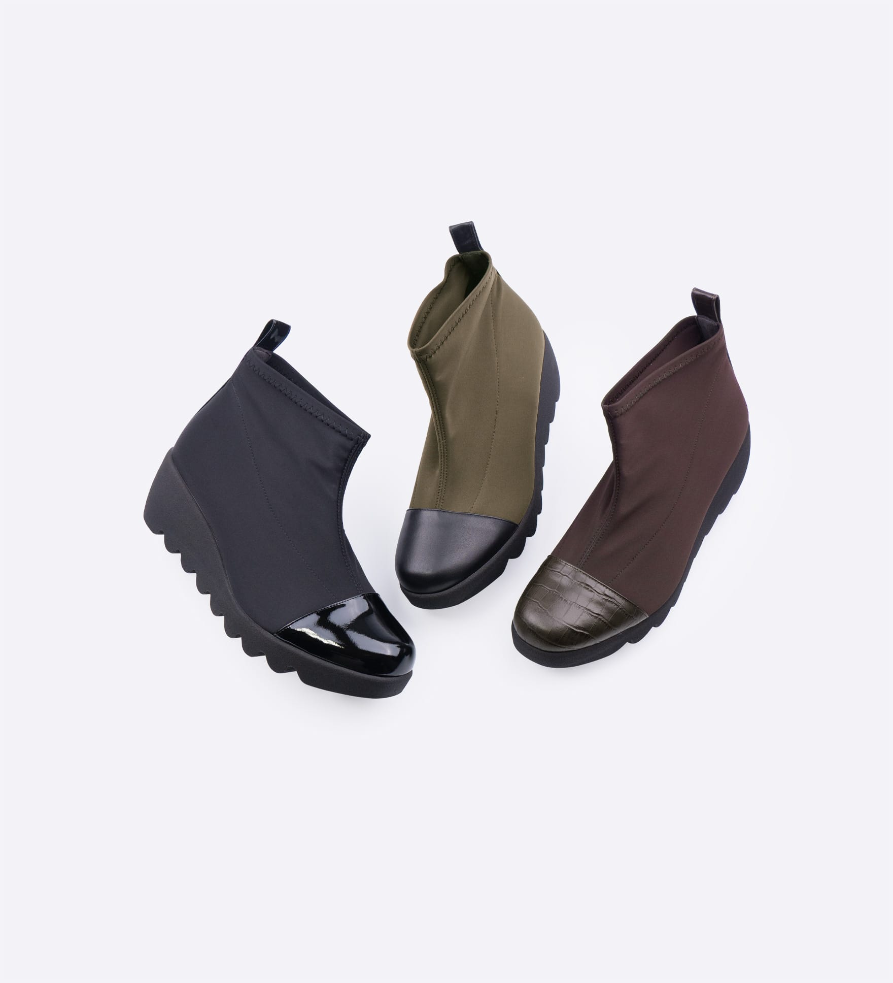 履き口にストレッチ素材を使用し、トウキャップがアクセントのブーティに仕上げました。足を覆う部分に施されたインナースポンジで足あたりがよく、屈曲性とグリップ力に優れた「ウェーブソール」を採用しています。