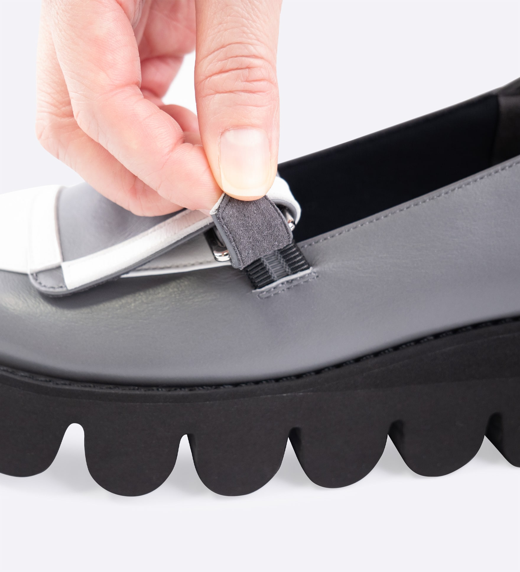 バイカラーとフラップ風のデザインが目を引く、感度の高いローファー。すっきりとしたフォルムと色使いが都会的な印象を演出します。一足でコーディネートを引き締め、洗練されたスタイルに格上げ。アッパーに施されたインナースポンジがやさしく足にフィットし、滑りにくいEVAソールは厚底でありながら驚くほど軽く、安定感があります。