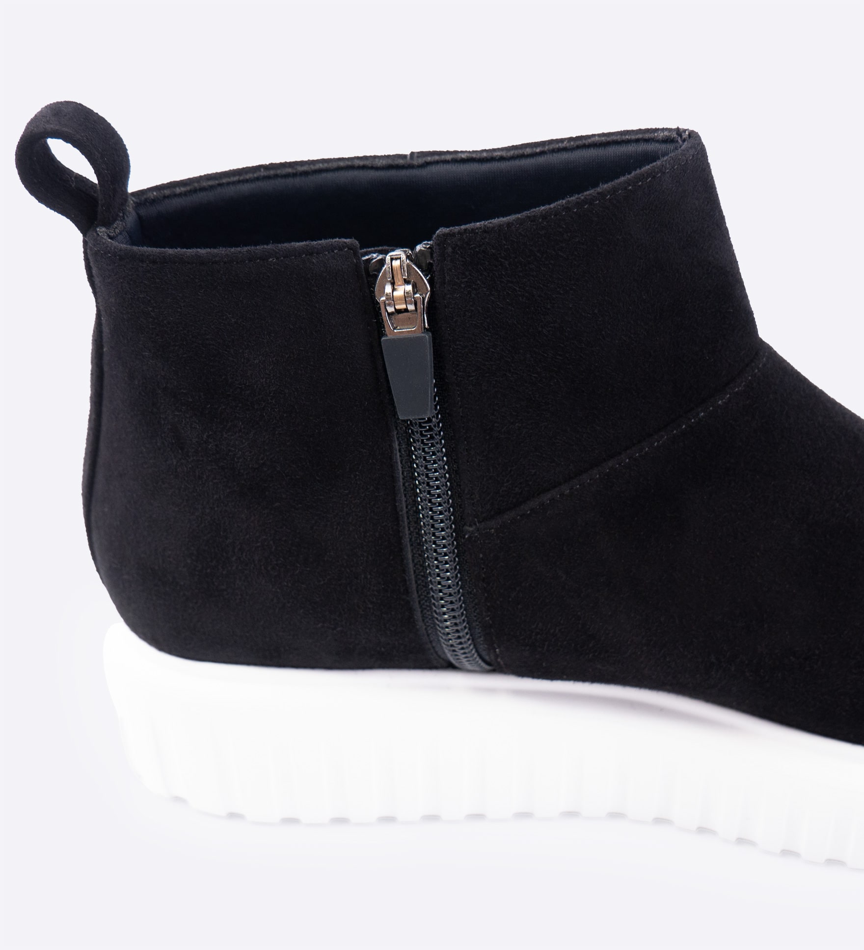 スエードのしっとりとした質感と、すっきりとしたシルエットが魅力のサイドジップショートブーツ。秋冬の装いにリラクシーなムードを添える一足です。サイドジップ仕様で着脱もスムーズ。アッパーに施されたインナースポンジがやさしく足にフィットし、ソールは安定感があり、驚くほど軽い履き心地です。