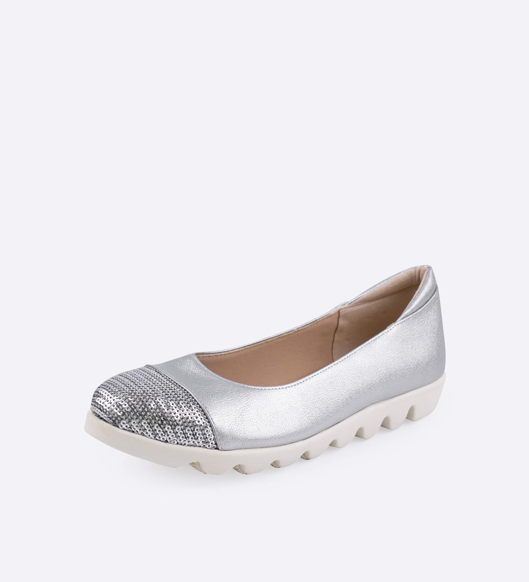 人気のヴィーナスパンプスをフラット感覚で履けるウェーブソールリップルで作りました。デイリーに取り入れやすい一足です。つま先には一枚ずつ丁寧に施したスパンコール刺繍をあしらい、控えめながらも上品なアクセントに。