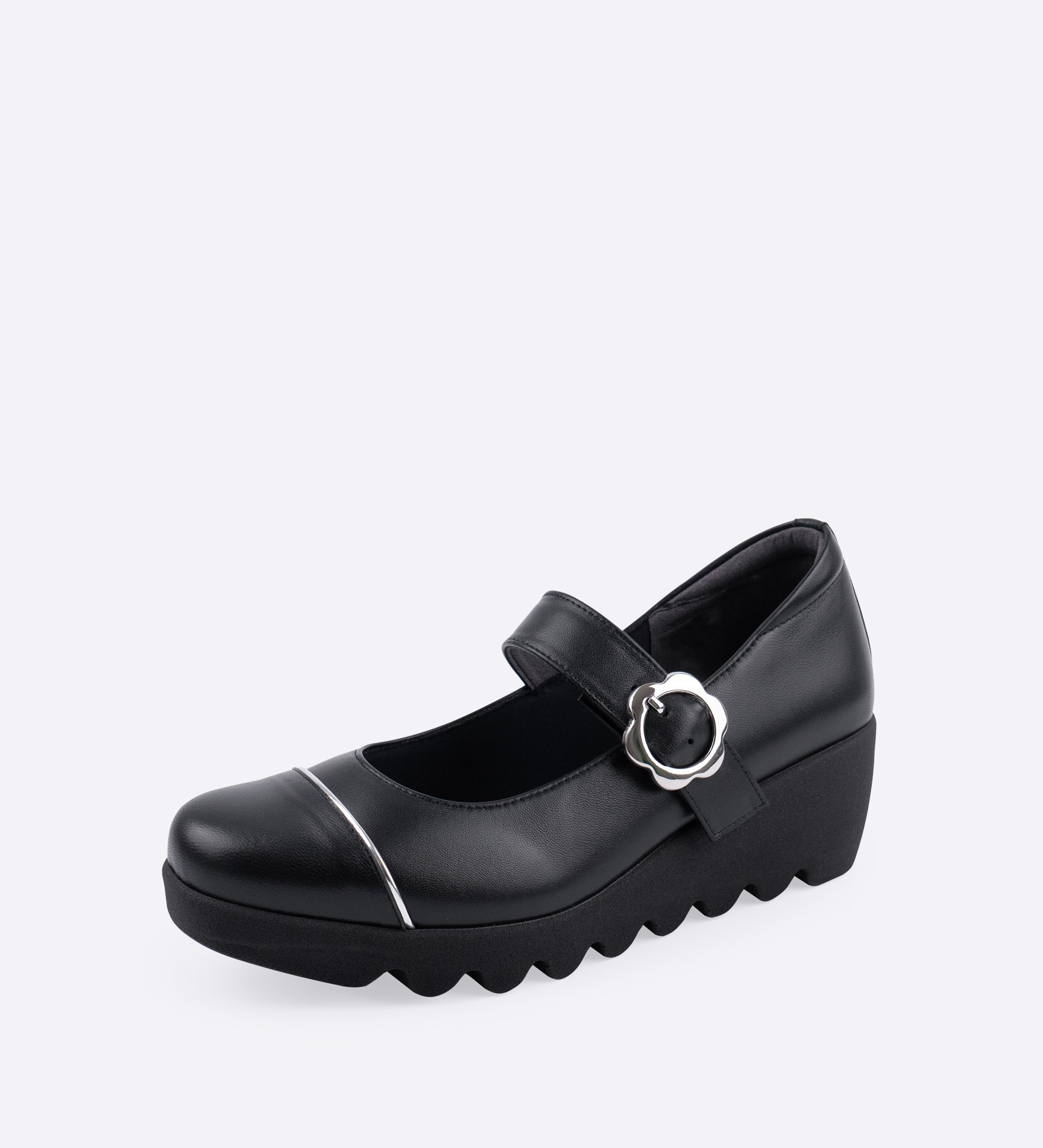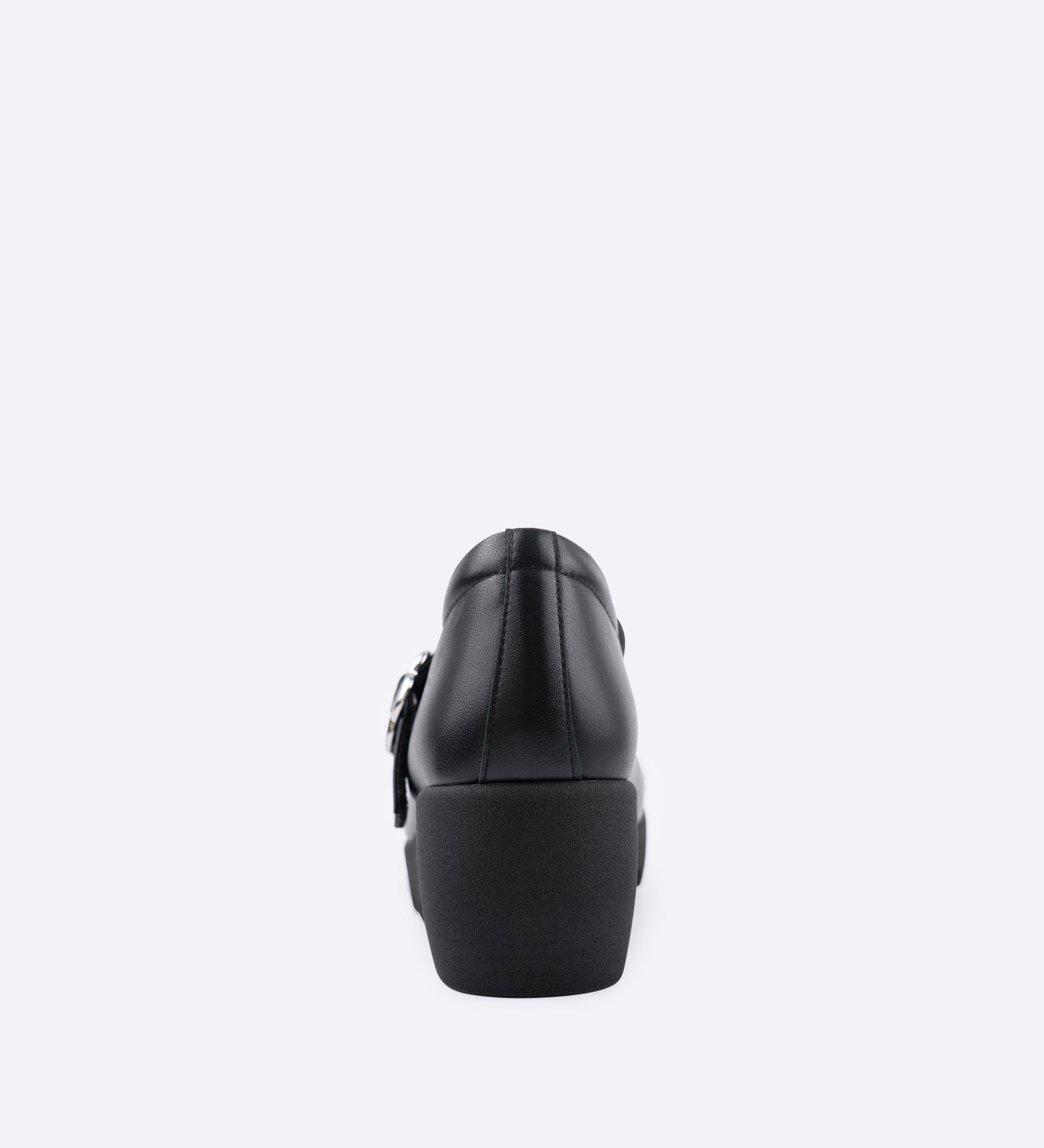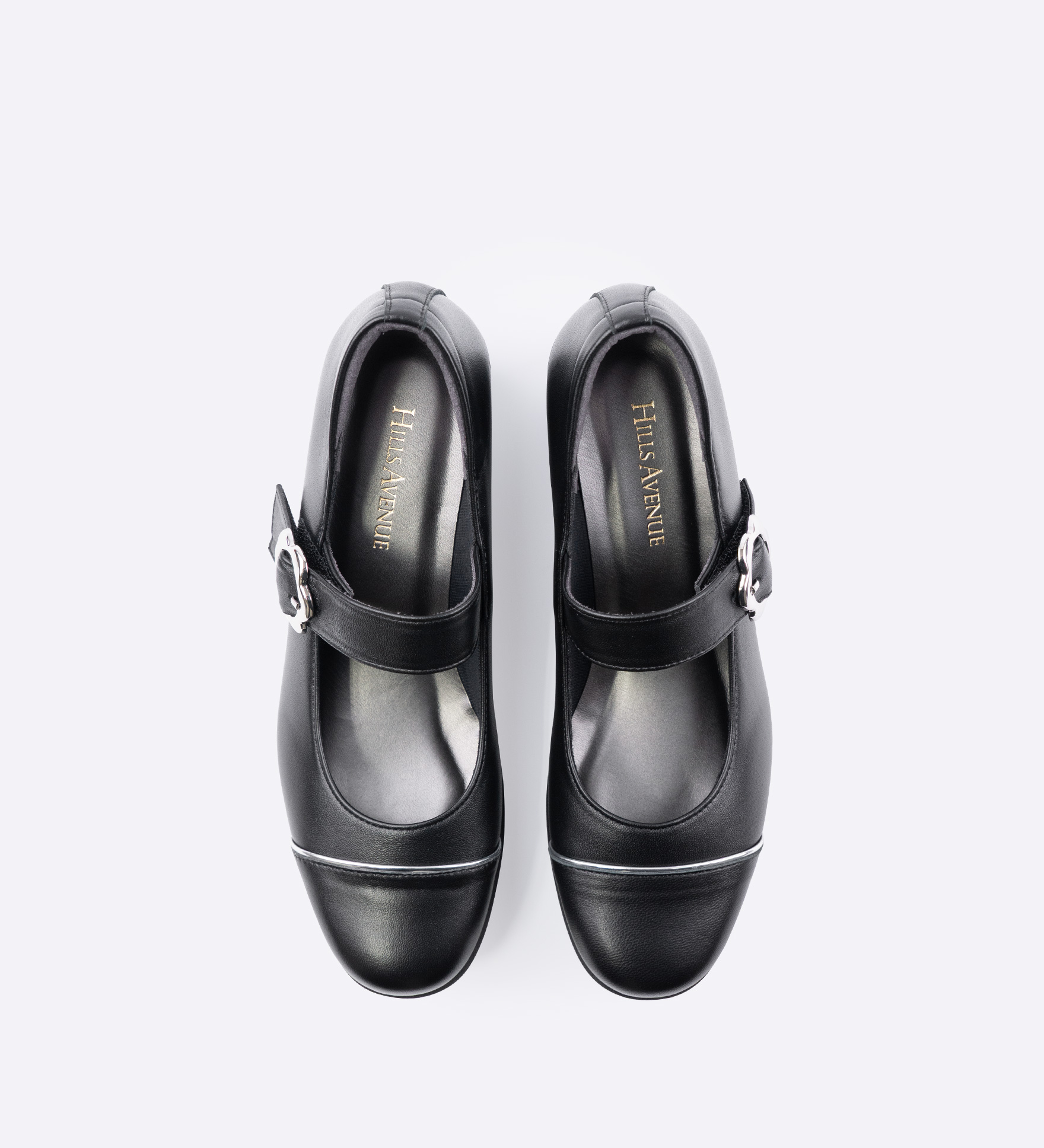 太めのベルトが足元をしっかりと支え、きちんと感のある佇まいに仕上げた一足です。丸みのあるトゥに、さりげなくあしらったメタリックラインが上品なアクセントに。通勤や日常のお出かけなど、幅広いシーンで取り入れやすい、落ち着いた表情のデザインです。