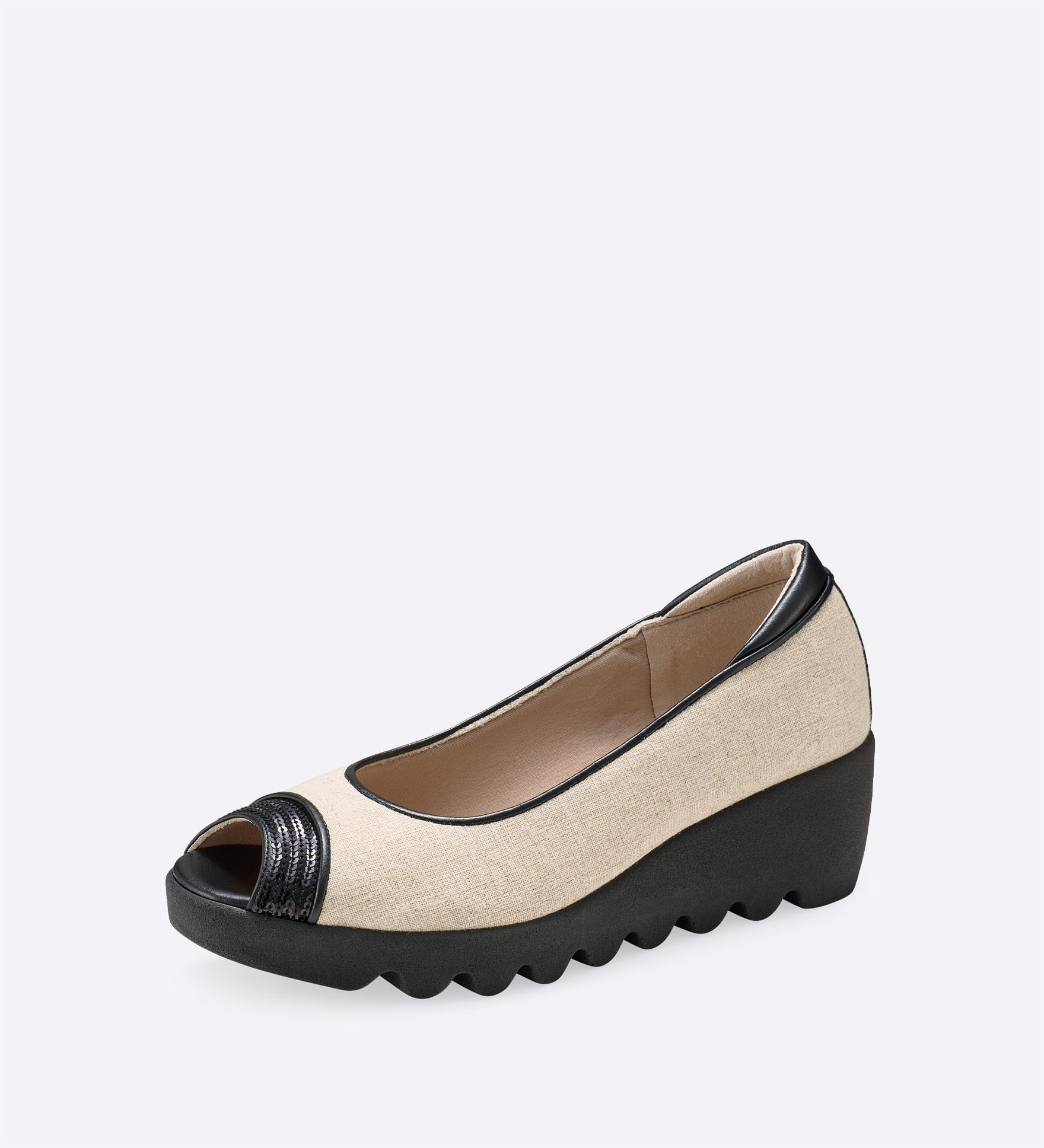 | アッパー素材 | 麻素材 ブラック、アイボリー:合成皮革 ブラウン:ゴート革型押し |