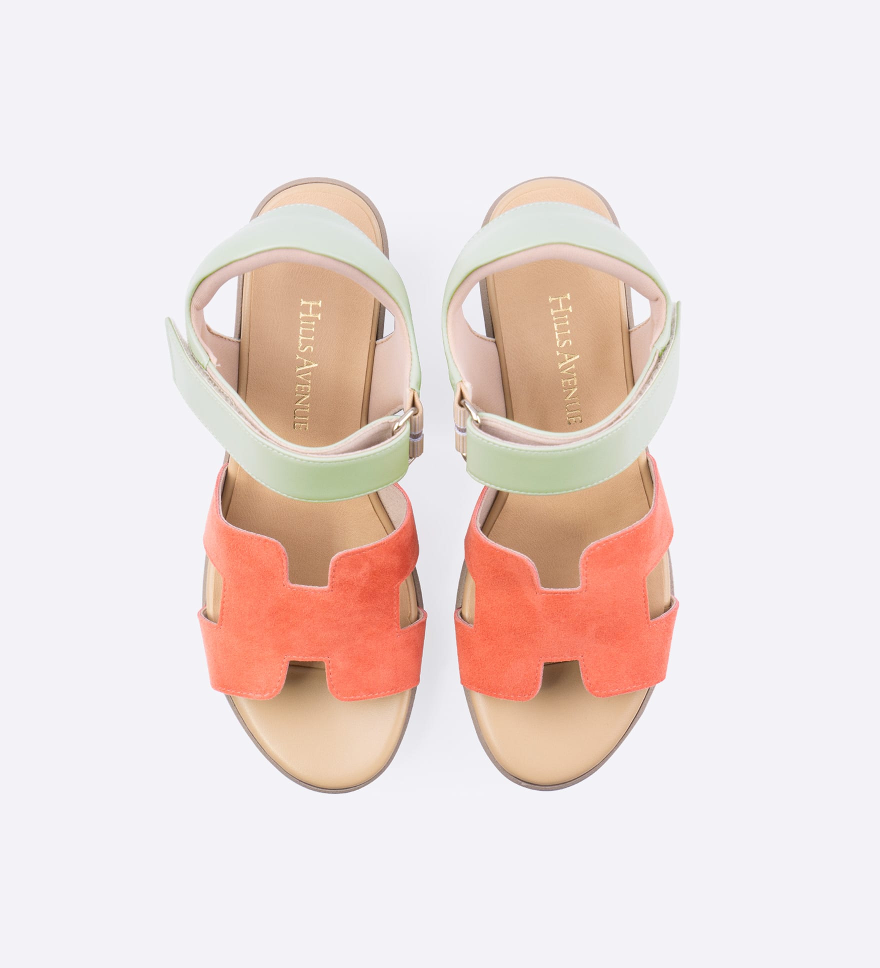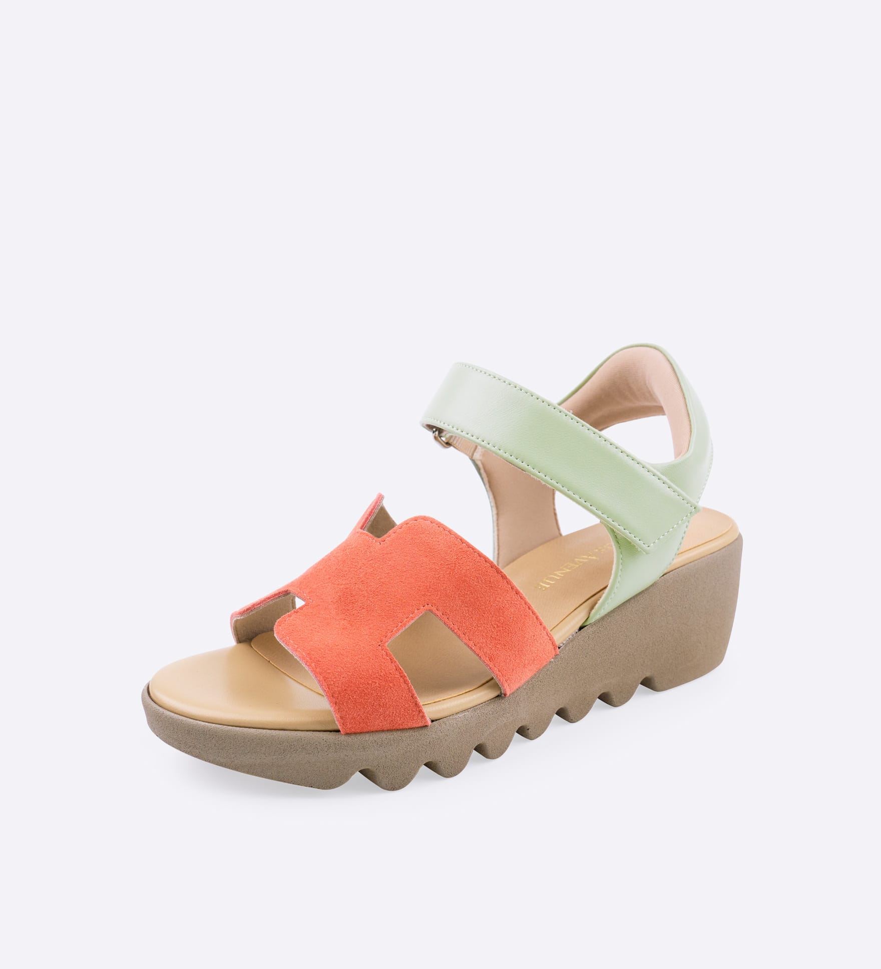 柔らかなスエード素材をバイカラーで組み合わせた、足元に彩りを添えるサンダルです。甲までしっかりとカバーするデザインに、面ファスナー仕様のストラップを合わせ、安定感を意識したつくりに。程よい存在感があり、シンプルな装いのアクセントとしても活躍します。