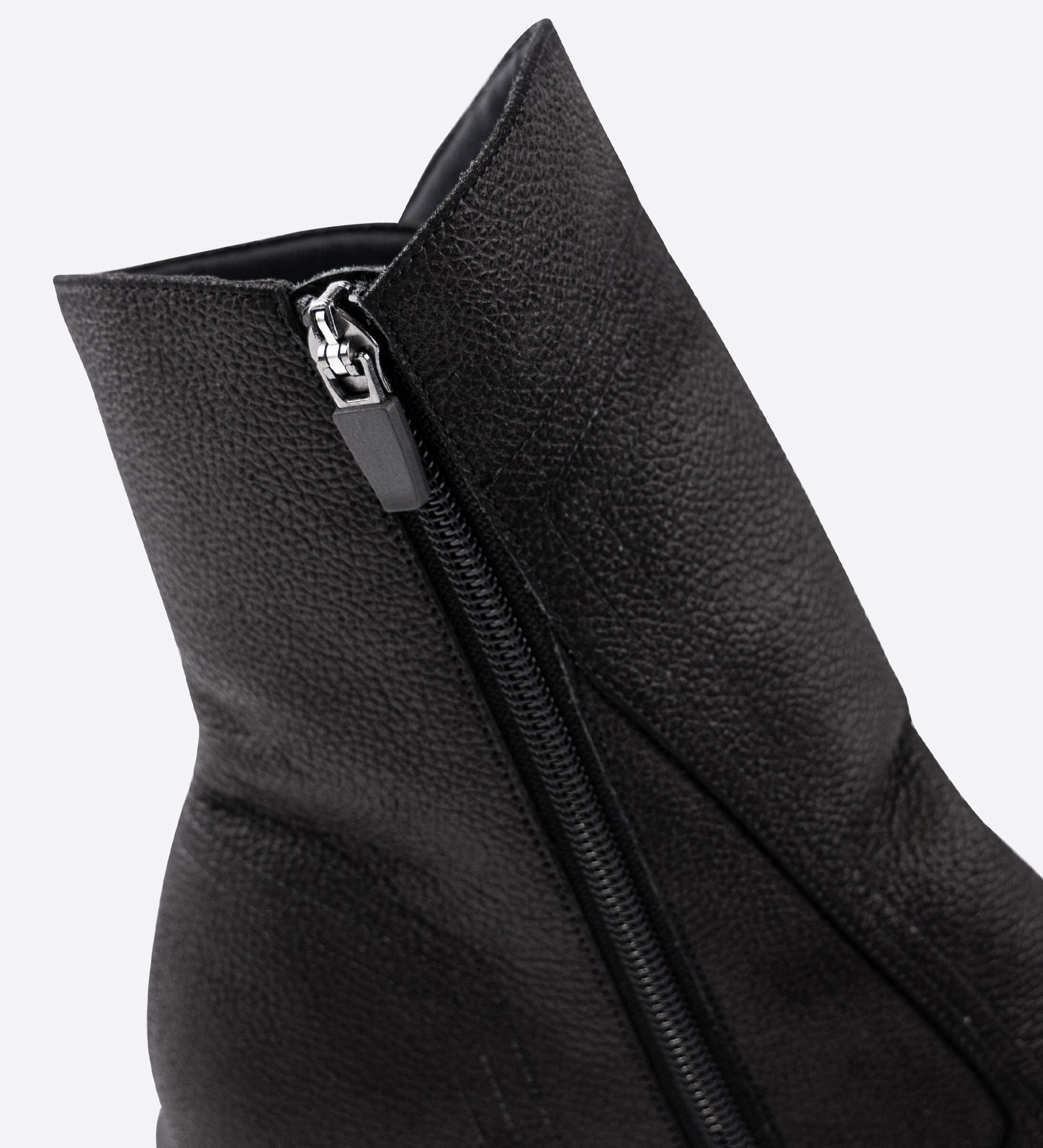 やわらかく足を包み込むヌバックレザーの風合いと、すっきりとしたミドル丈シルエットが特徴のブーツ。両サイドに施された切り替えが、足首をほっそりと見せながら、インサイドファスナーで着脱もスムーズ。パンツにもスカートにも合わせやすく、秋冬の定番として活躍する一足です。アッパーに施したインナースポンジがやさしく足にフィットし、屈曲性とグリップ力に優れた「ウェーブソール」が、快適な歩行をサポートします。