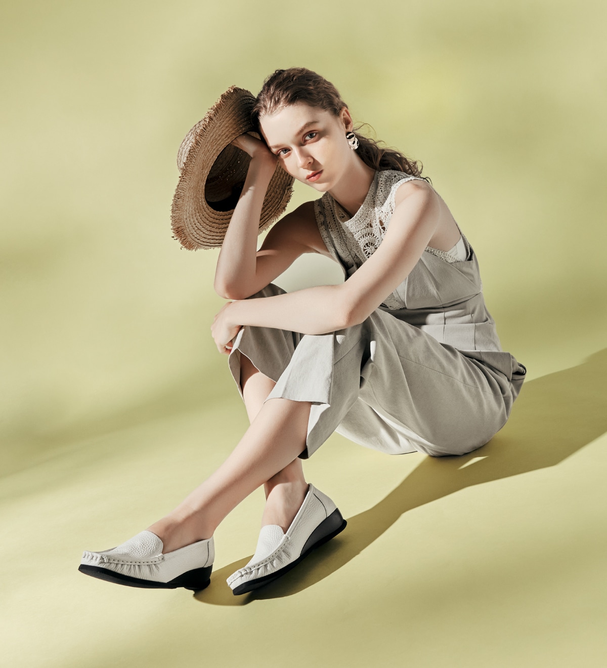 4cmで魅せる上品なシルエット。なだらかなスクエアトゥ、足先ゆったりなのに細見え。ミッドソールがポリウレタン素材になりクッション性が大幅にUPしました。